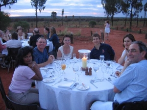 エアーズロック(ウルル)がを見渡せる、小高い丘の上にある野外会場で、ビュッフェディナーを頂きます。ちなみに、ラクダで移動するプランもあるので、こちらも一緒に申し込まれると良いでしょう。