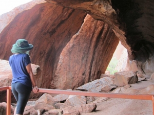 この辺りは、雨が降ると水が溜まり泉になる。「水蛇の家(Kapi Mutitjulu)」と呼ばれ、ニシキヘビが卵を置いたとされる、とっても神聖な場所。