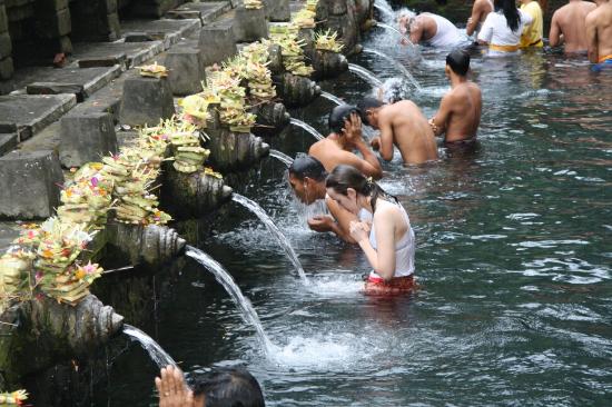 ティルタ・ウンプルとはティルタ=「水」、ウンプル=「聖」という意味で、所謂聖なる水が湧く寺院として広く知られているパワースポットです。こちらには泉の水を引いた沐浴場があり、満月と新月の日は体を清める為にとくに多くの参拝客が訪れます。水が出る箇所が幾つかあり、それぞれ意味が異なってご利益があるのですが、右のふたつは「死者の為の水」であるため使用しない様注意が必要です。水がとても綺麗なのでぜひ沐浴にチャレンジしてみましょう!勿論、着替える為の更衣室も用意されています。