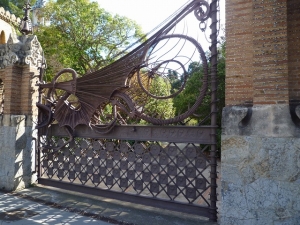 革新的であると同時に装飾的な職人の技をこちらでは見ることが出来ます。その最たる例は、正面入口のドラゴンの門です。コウモリのような翼と、二股に分かれた舌を持つ鉄細工はは、ギリシャ神話の「ヘスペリデスの園」に出てくるドラゴンを表しています。これらの門衛所は現在、カテドラ・ガウディという研究所として使用されています。