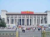 天安門広場のすぐ東に位置しています。総面積は約65,000平方m、規模は世界最大クラスです。内部は北と南に分けられ、常設展ではおよそ9,000件の資料を見物することができる。歴史博物館における最も貴重な文物には、殷代の現存する最大の青銅器・司母戊鼎(高さ133cm、足の高さ46cm、厚さ6cm、重さ875kg)、漢代の金縷玉衣、東呉の青瓷羊、唐三彩、戦国期の陶質雕塑などがあり、中国の歴史教科書に掲載されているような文物を常に見ることが可能。内部はゆっくりしているととても全部は見れないほど広大です。展示物の写真撮影もOK。日本やイタリア、ギリシア、エジプトなどの博物館から貸し出される各国の国宝級文物の特別展(有料)も開催されています。入場は無料ですが、身分証明書を提示して入場券をもらい、セキュリティチェックを済ませる必要があります。