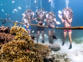 ヘルメットダイビングは、ちょっと変わった手軽に海中の散歩をして頂けるシステムです。髪の毛を濡らすことなく浅い海底の世界を観察することができます。