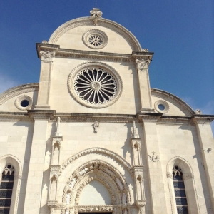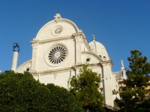 この大聖堂の建設は、巨匠ジョルジョ・オルシーニの指揮のもとベネチアと地元の職人たちにより1431年に始まりました。オルシーニが建設半ばで死去すると、後継者たちが次々と建設を引き継ぎ、1535年に100年あまりの歳月をかけて完成しました。大聖堂のドーム屋根はユーゴスラビアの内戦中の1991年9月、セルビア人部隊による砲撃で破壊され失われてしまいましたが、その後数年で修復されました。