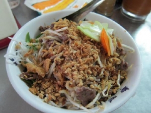 「ブン」はベトナムではフォーよりもメジャーな食べ物です。押し出し法で作られる断面が丸い米麺です。「ボー」は牛肉、「ナムボー」はベトナム南部を意味しています。