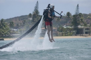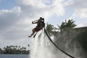 新感覚アクティビティーのジェットレブ!両脇のノズルから噴き出る水力を利用したジェット飛行マシンを身につけて、ハワイの海を自由に飛び回れる体験を味わえます。迫力満点のジェットレブをお楽しみ下さい!