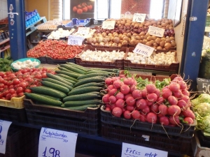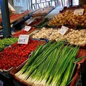 1階には、精肉店、サラミ店、青果店、パプリカ、香辛料などのお店が並んでいます。ハンガリー土産として人気のフォアグラ、キャビア、蜂蜜等を購入している観光客もたくさんいます!日本では見かけない野菜や乾物、香辛料、巨大なサラミ等も手に入れることができますよ♪