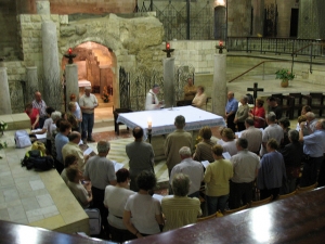 教会中央にはマリアが受胎告知を受けたとされる洞窟と祭壇がある。