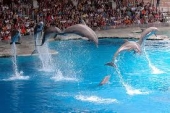 主役のイルカはパークのシンボル。インストラクターと一緒に繰り広げるイルカショーは感動もの。園内はテーマごとにアトラクション施設が設けられ、中でも地球の誕生のストーリーを3Dで追うシアターは迫力がある。点在する池の周囲には家畜やワシ、ミミズク、水鳥などの観察スポットがあり、普段出会えない野鳥などに身近にふれあうことができる。また、夏場に開かれるプール、アックアファン(ACQUAFAN)が隣接している。