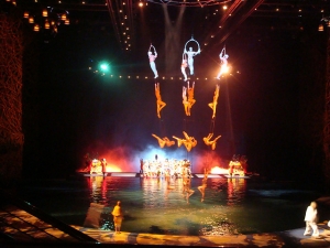 570万リットルの水を自由自在に水位を変えて、舞台になったりプール状になったりするステージで、元オリンピック選手を多数起用した、世界に誇るサーカス集団のシルク・ド・ソレイユが、人間の限界に挑戦するかの様なパフォーマンスを繰り広げる。やはり、一度は見ておきたい!
