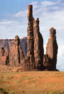 トーテム・ポールは高さ約250m近くある細い岩。一群のタワーエイビチャイ Yeibichai (ナバホ人の伝説に出てくる踊り子たち)が踊る姿に似ていると言うことから名づけられた。