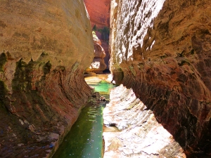 ザイオンの段差は落差600m~1200m、コロラド川の支流ノースフォークバージン川による侵食によって出来たもの。奥に行けば行くほど幅が狭くなりナローズと呼ばれるところの最も狭いところで2m程にもなる。 600m~1200mの壁、日の出、日の入り時太陽のあたり加減で色が変化するので見逃せない所だ。