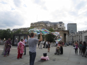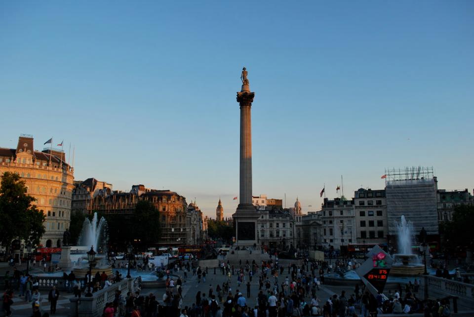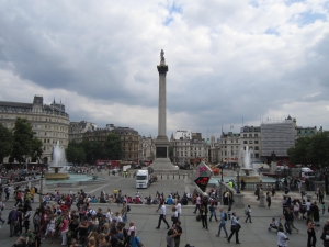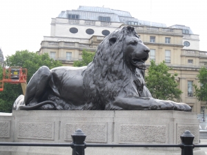 トラファルガースクエアの目印に真ん中にはとても高さのあるネルソン記念柱があります。まわりには4つの巨大なライオンの像があります。また、トラファルガー広場には愛国意識が感じられ、英国の歴史的な大人物のブロンズ像が広場のあちこちに配置されています。