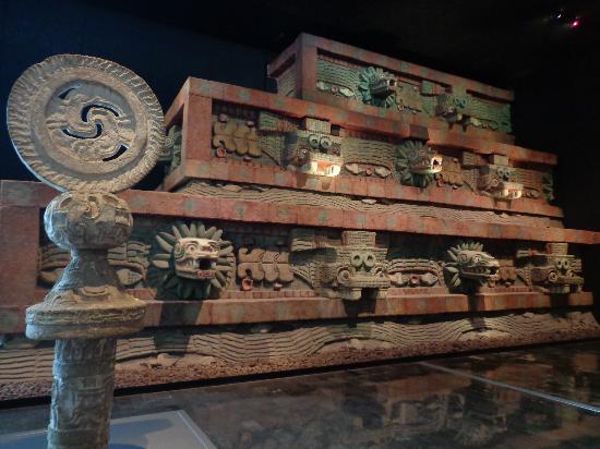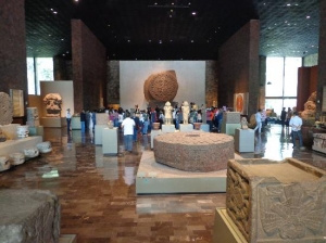 展示室は23あり、それぞれ特定の地域や文化の展示がされています。メソアメリカ文化のテオティワカン、トルテカ、アステカ、ミステク、サポテカ、オルメカ、およびマヤ文明などがその例です。最も有名なアステカ・カレンダーの「太陽の石」は必見です。1400年後半ソカロの下に埋まっていたところを発見され、約3.6メートル、25トンの玄武スラブ岩です。こちらはオリジナルの作品で、とても貴重なものです。ぜひお忘れないようにしてください。その他の見どころは、8世紀のマヤ文明の墓の復元と完璧な保存された骨組み、テンプロ・マヨールのミニチュア模型、アステカ君主モクテスマ2世の羽が付いた頭飾りのレプリカや、オルメカ文明の巨頭像があります。