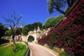 ブーゲンビリア(熱帯性の低木)の壮大なカーテンで飾られた雄大な入り口。神聖なオリーブの木のモナコの宮殿のドアがいま開く― この自然美しい場所は恐らくモナコの祖先達の休日の集まりの場所でありました。現在も庭の愛好家達、子供たちにとって素晴らしい遊園地であり続けています。