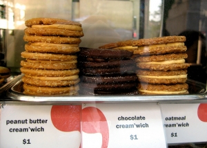 その場で作ってくれるサンドイッチの専門店。シックな店内はどこか落ち着き、壁にかかっている絵は全て調理器具がモチーフととてもユニーク。絵の中に周辺の建物が飾られていたりも。自家製パンにターキー、アボカド、ベーコンなどがたっぷり入ったロースとターキーサンドが人気。お店に訪れたら絶対に試して欲しいのがクリームウィッチというクッキ。オートミールクッキーにメープルクリームが挟まれている。ざっくり、しっとり、少し噛みごたえのあるチューイーな木々は他にはなく。感動的。地元でも大人気で、このクッキー目当てで訪れる人も多いのだとか。