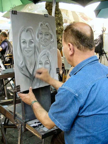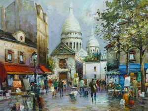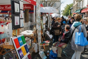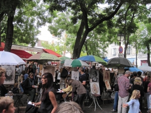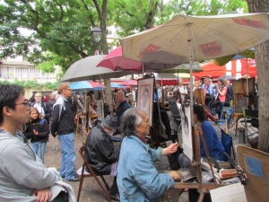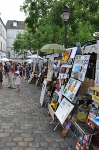 テルトル広場はモンマルトルの丘、サクレクール寺院の近くにある広場。この地には19世紀から20世紀にかけてピカソやユトリロなどが住んでいたこともあり、多くの芸術家がこの広場に集ったとか。現在はカフェやレストラン、お土産屋などが立ち並び、広場の中ほどでは肖像画や風景がを描きながら自分の作品を売るアーティストたちを見かけます。似顔絵や切り絵なども描いてくれるので、パリの思い出にぜひ。