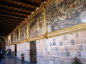 中庭を囲むように月の神殿、星の神殿、稲妻の神殿、虹の神殿などがありました。月と星の神殿が一番大きく、銀で覆われていました。夏至には、南米三大祭りの1つインティ・ライミ祭りの開会式が裏庭で行われます。現在は博物館として、コリカンチャの内部を見学出来ます。他にも文化センターとして教会内で演奏会が開かれたり、企画展やアートコンテストなども開かれています。