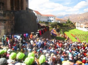 コリカンチャはインカ帝国太陽の神、インティを祀る重要な神殿でした。ケチュア語で「コリ」は黄金、「カンチャ」は囲い場を表しています。その名が示す通り、この神殿は1枚あたり重さ2kgの純金の板700枚を使って装飾され、神像をはじめ数多くの黄金製品が納められていましたが、征服活動を行うスペイン人によって1カ月もせずにすべて破壊・略奪されてしまい、現在はその姿を見ることは出来ません。スペイン人は石組みの土台だけを残し、その上にサント・ドミンゴ教会を建設しました。クスコを襲った大地震でその上の教会は壊れましたが、インカ時代に作られた土台は壊れなかった歴史があります。