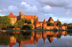 マルボルク城は、ポーランドの都市マルボルクにある城です。この城はドイツ騎士団がバルト海沿岸地方征服の拠点として1274年に建設したもので、21ha(東京ドームにして4.5個分)の広さがあるといわれるほど大きなヨーロッパ最大の煉瓦造りの城です。