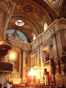 何度も改築がなされ、現在の姿になったのは19世紀後半です。ファサードはバロック様式で、内装は1878年にバロック様式から新古典主義とネオ・ルネッサンス様式に変わっています。