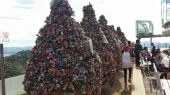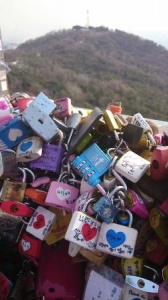 願い事を「愛の南京錠」に込めて鍵をかけると願いがかなうと言われています。すぐ近くの売店で南京錠を購入できます。