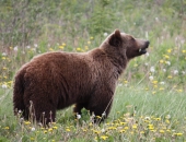 暗色の毛の先端が白っぽい毛色をしているグリズリーベアーは、体長180~260cm、体重110~530cmと巨体。ブリティッシュ・コロンビア州、アルバータ州のローキーマウンテンのエリア、ユーコン準州、ヌナブト準州に生息しています。(photo:Pixabay by brigachtal)